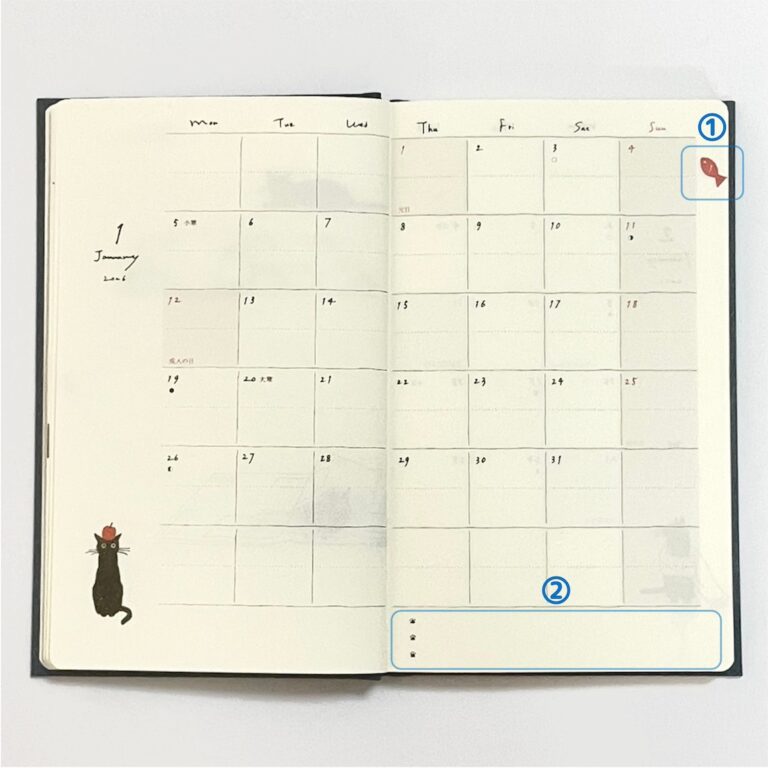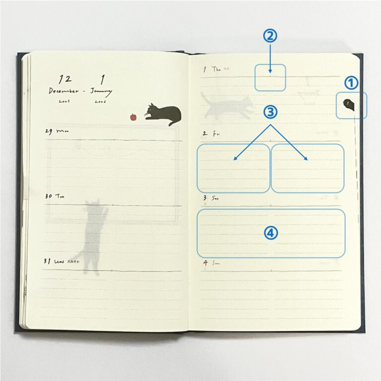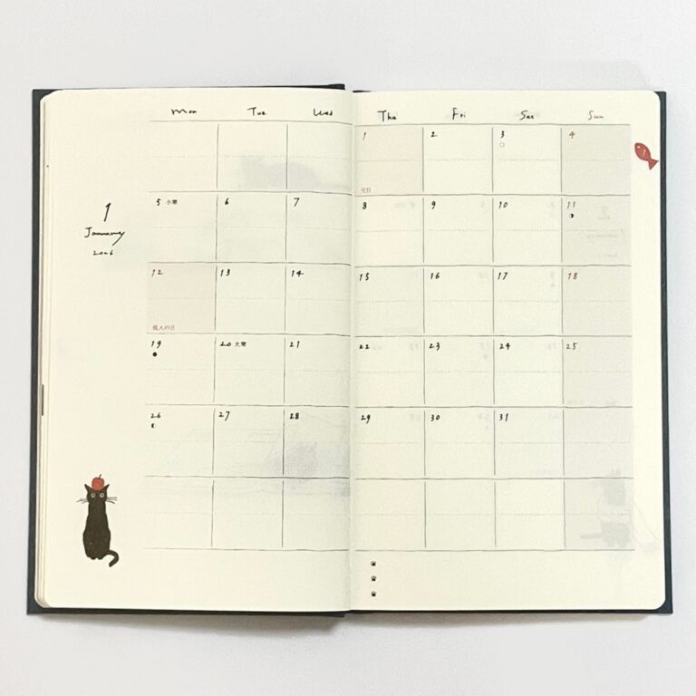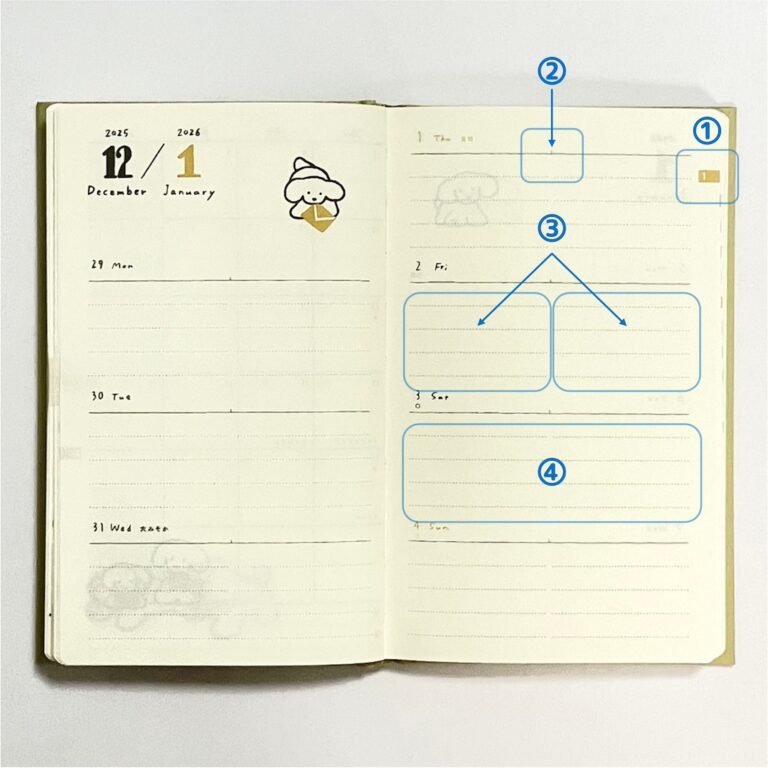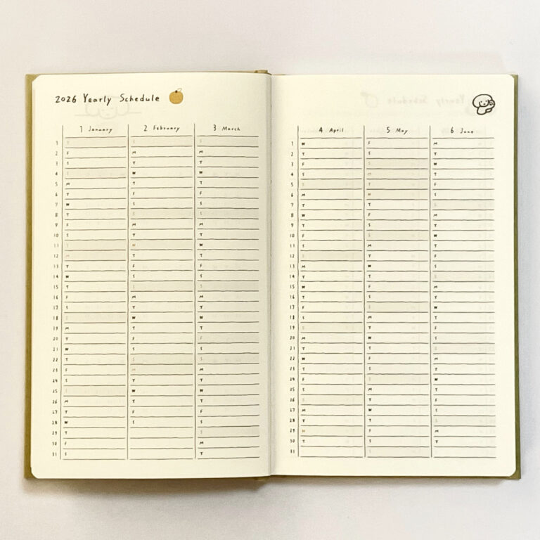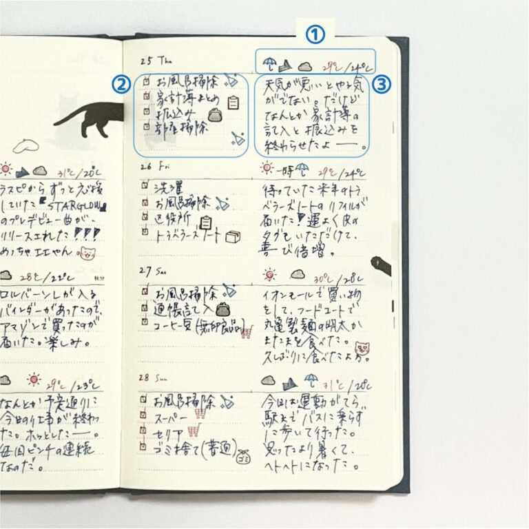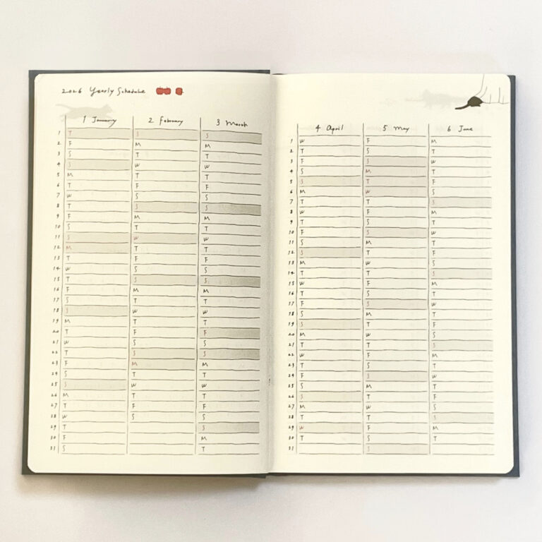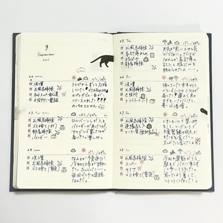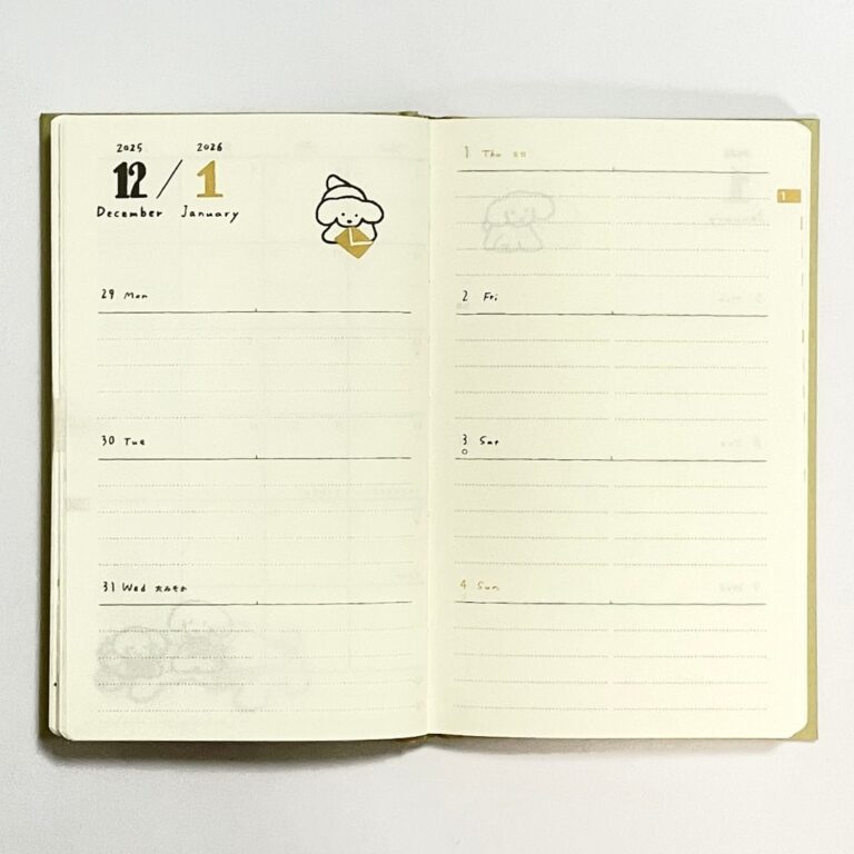 2025年版と2026年版の週間スケジュールは同じページレイアウトなので、今回は2025年版を使用しています。