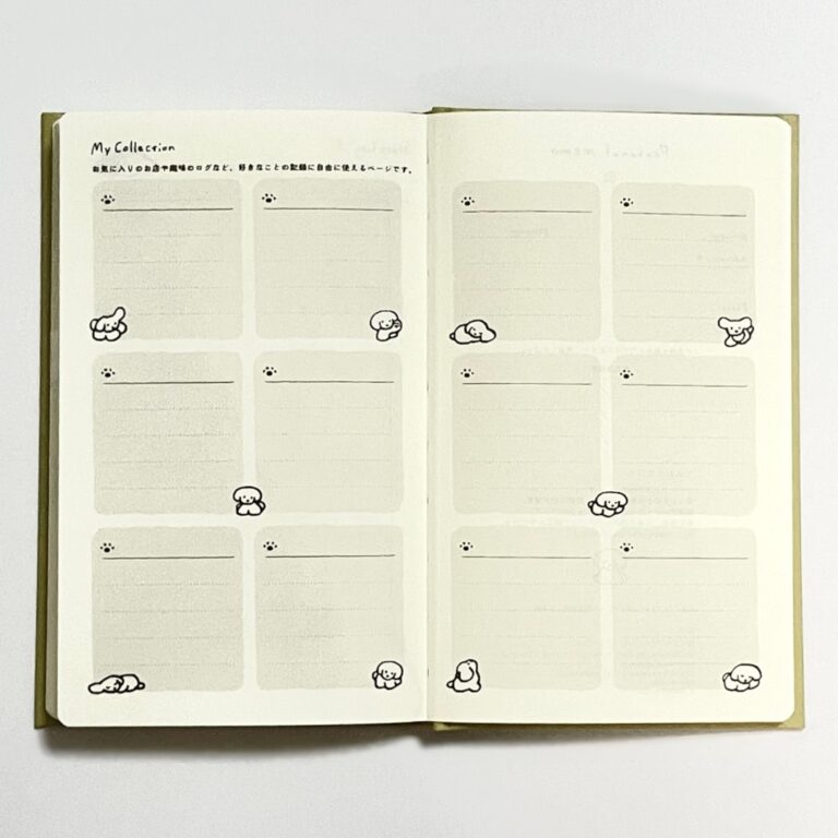 こちらもネコ柄と同じく、布クロスの表紙にかわいいイヌ柄の箔押しが施されています。
