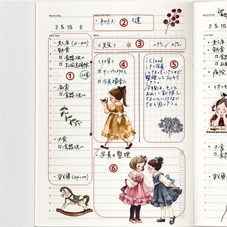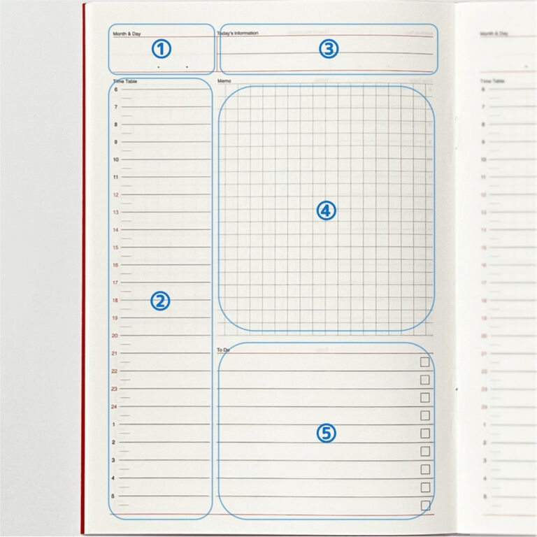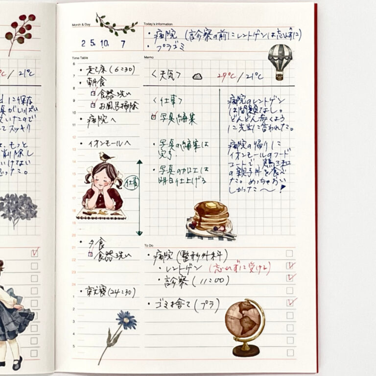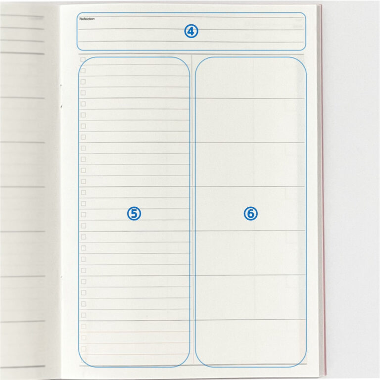1日1ページのレイアウトです。1日を計画してログを記録できます。