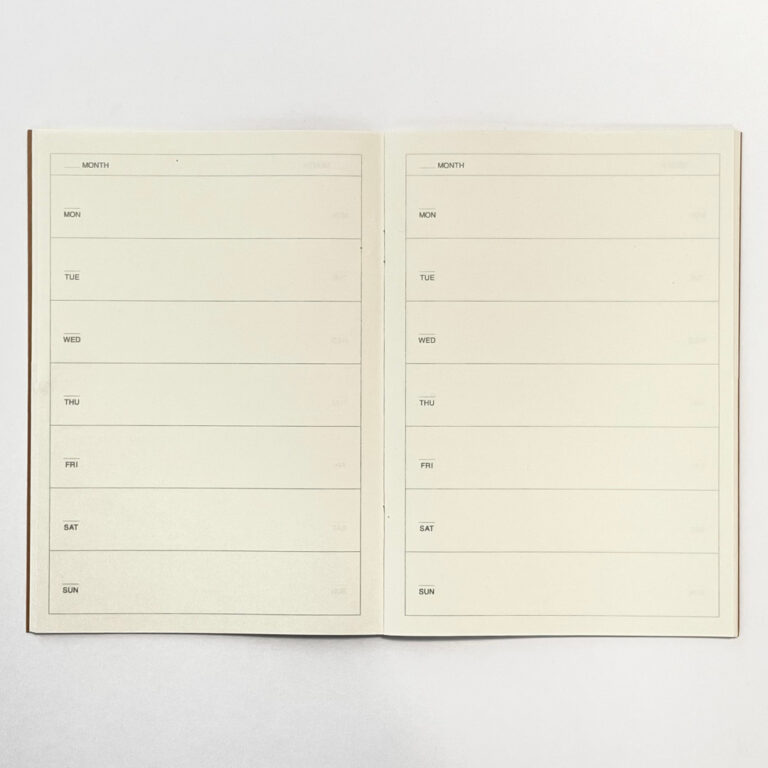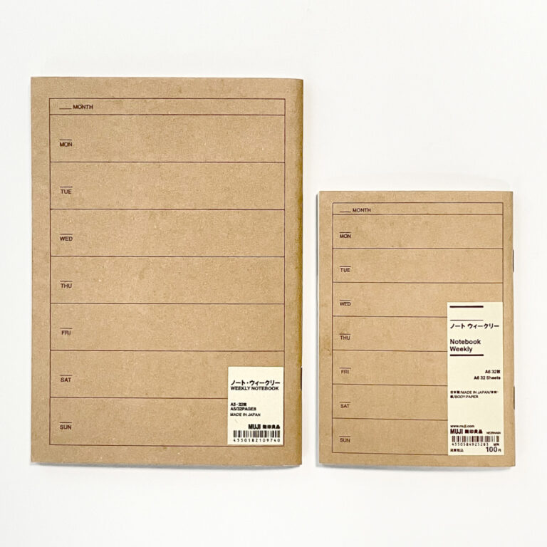 無印良品さんのホチキス綴じノートタイプの、日付フリーのスケジュール帳のご紹介です。おすすめのレイアウトを使うライフログの書き方も合わせてご紹介します。