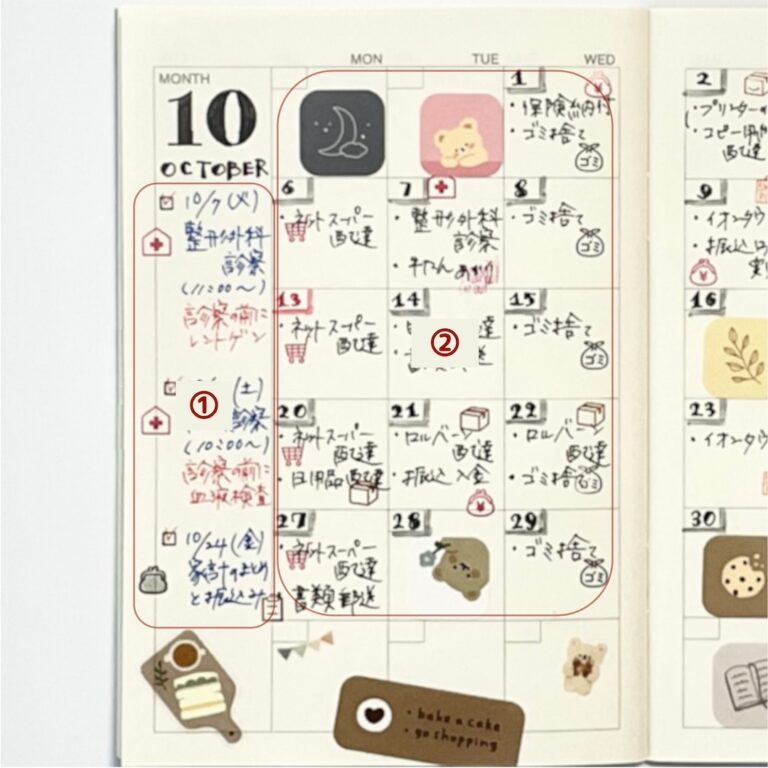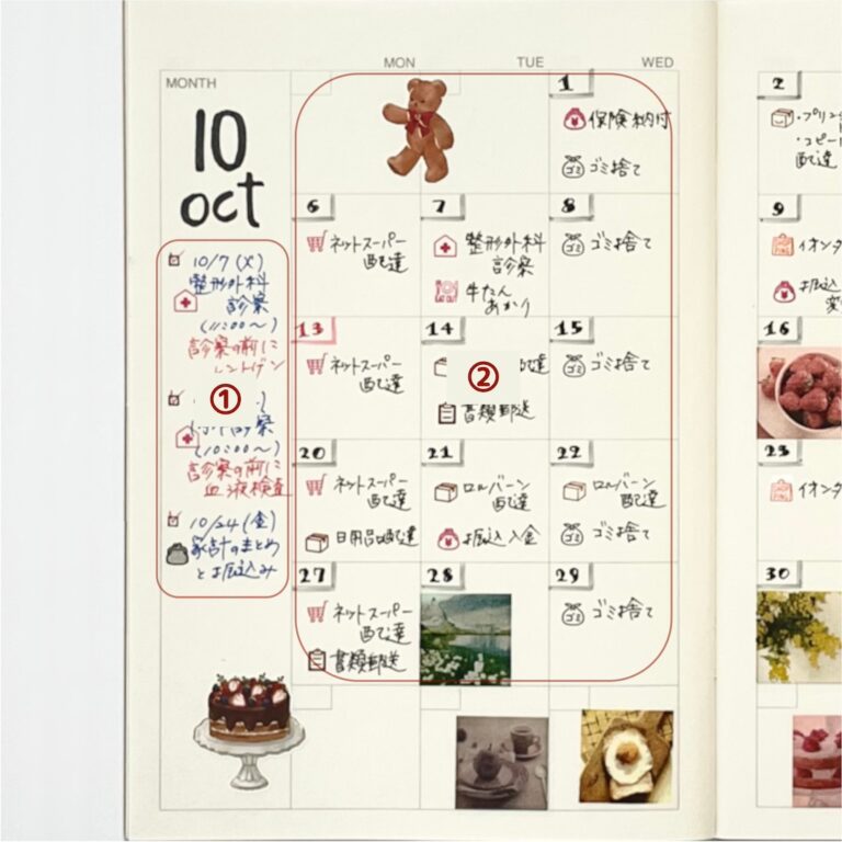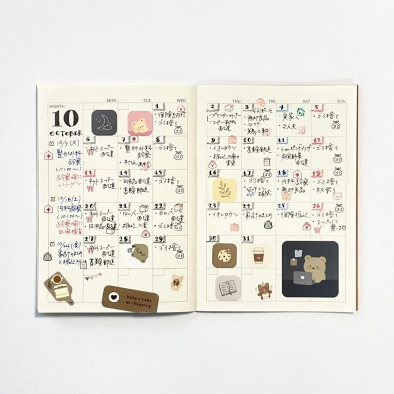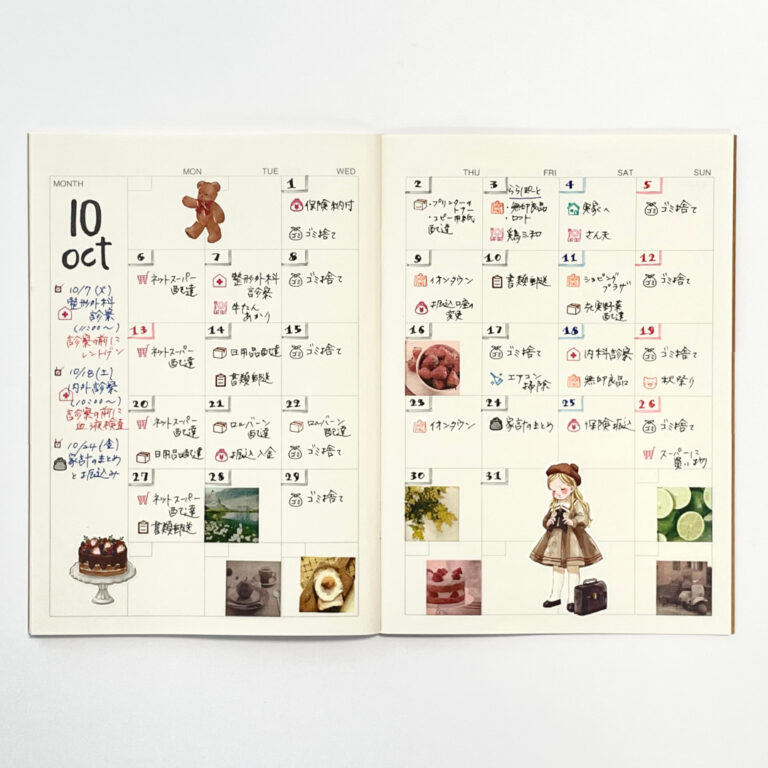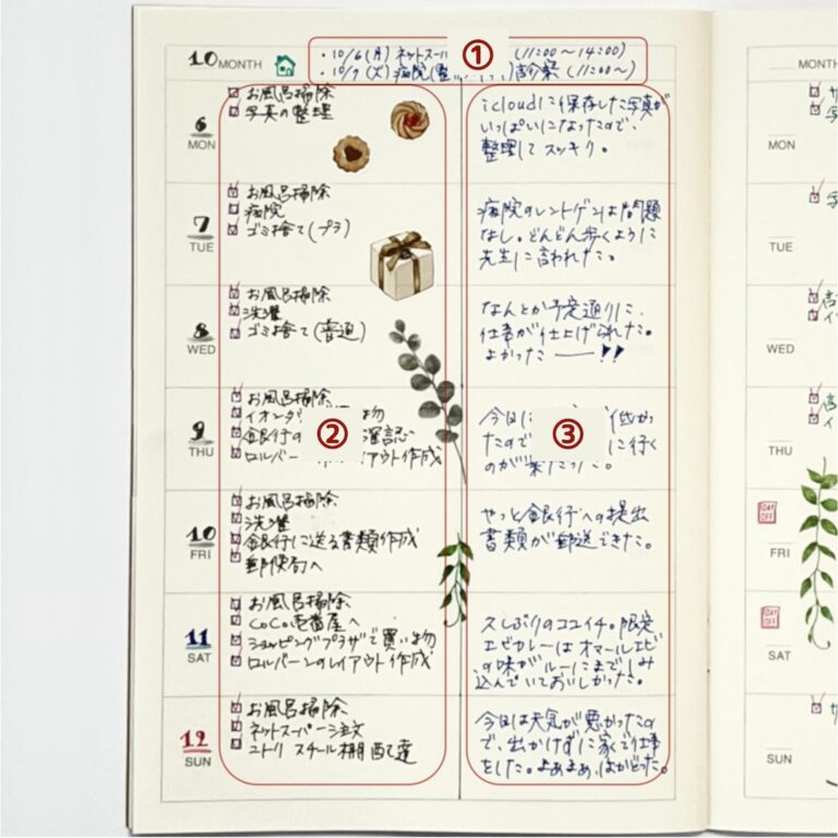 見開き2ページのマンスリーブロックに書く、おすすめのプチライフログの書き方です。