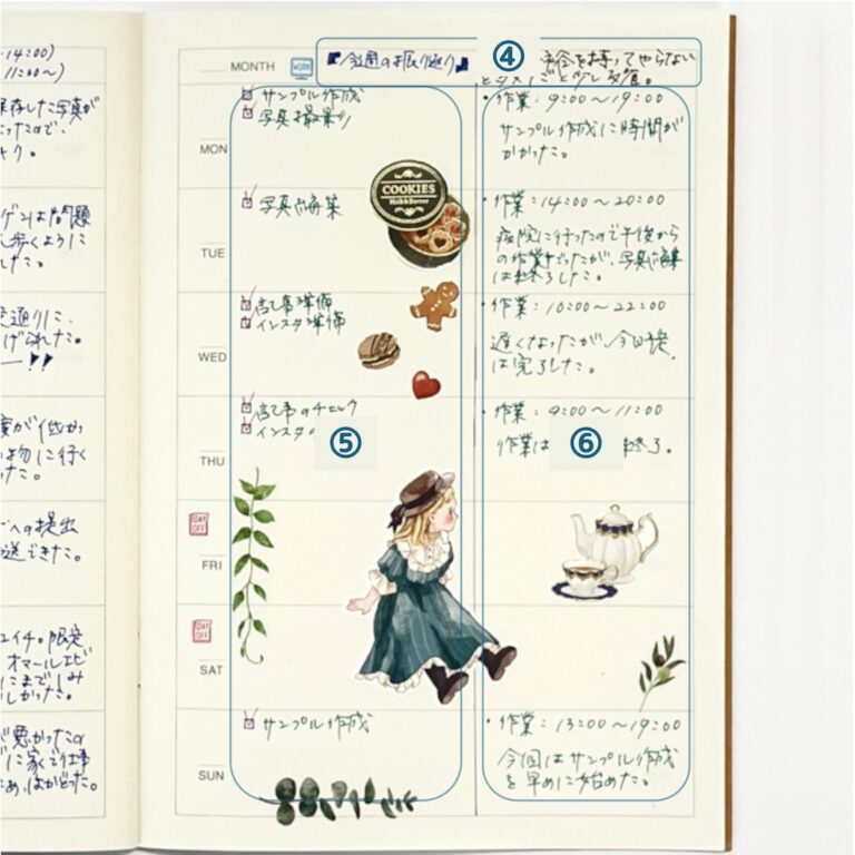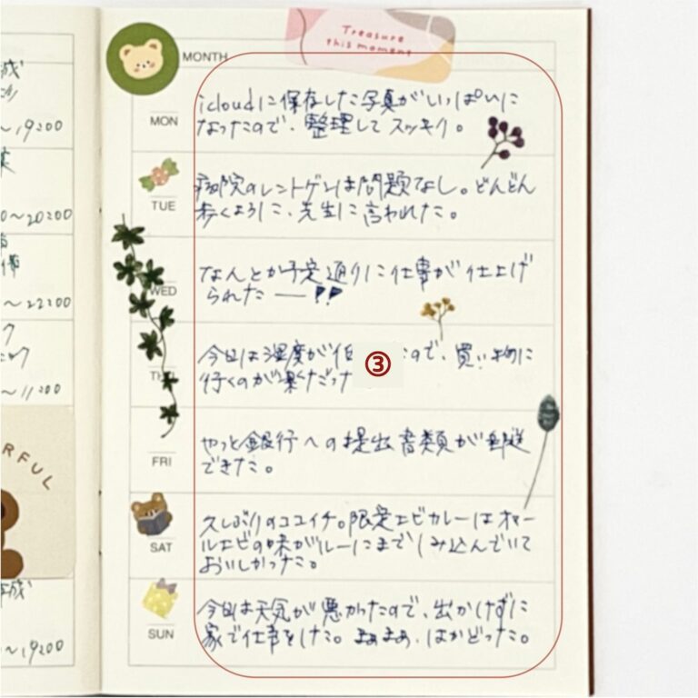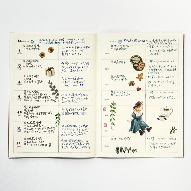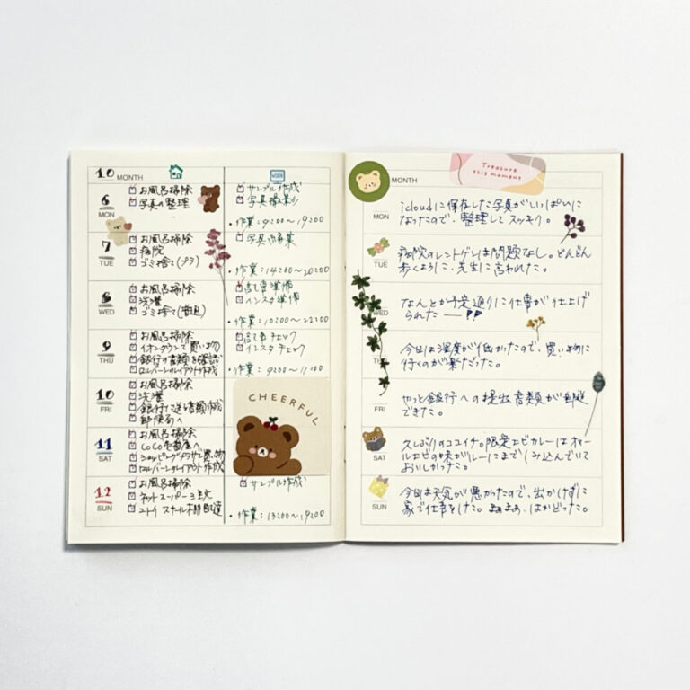 見開き2ページのウィークリーホリゾンタルを使って1週間分を書く、おすすめのライフログの書き方です。