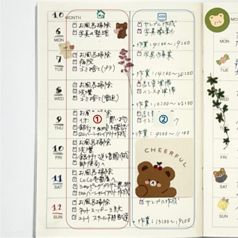 ノート ウィークリーの書き方