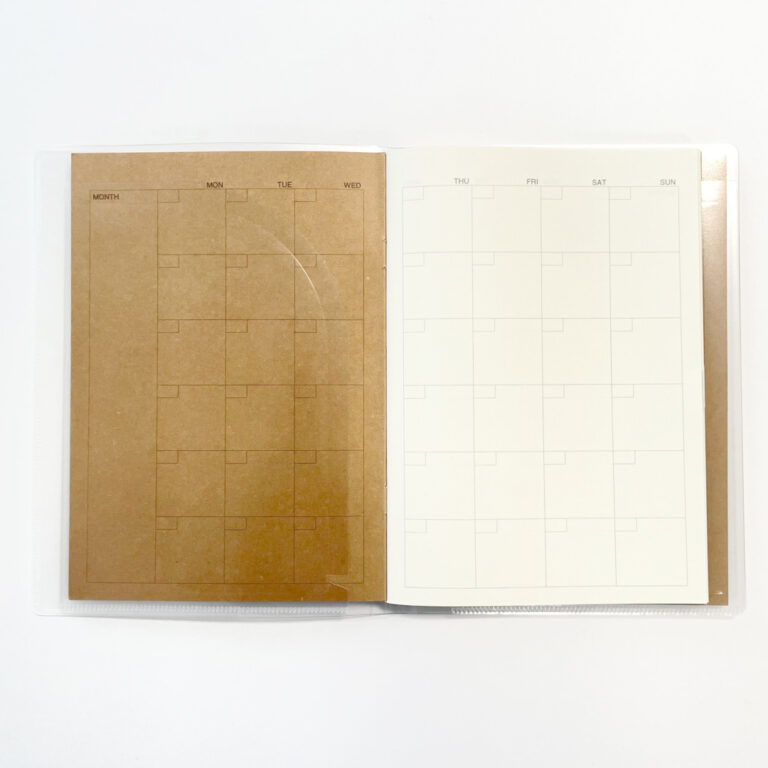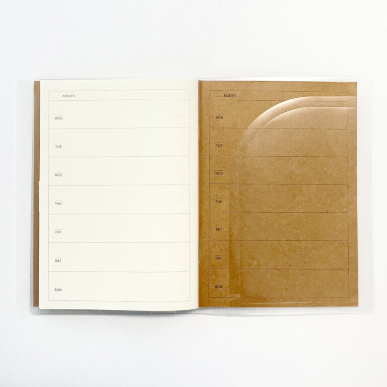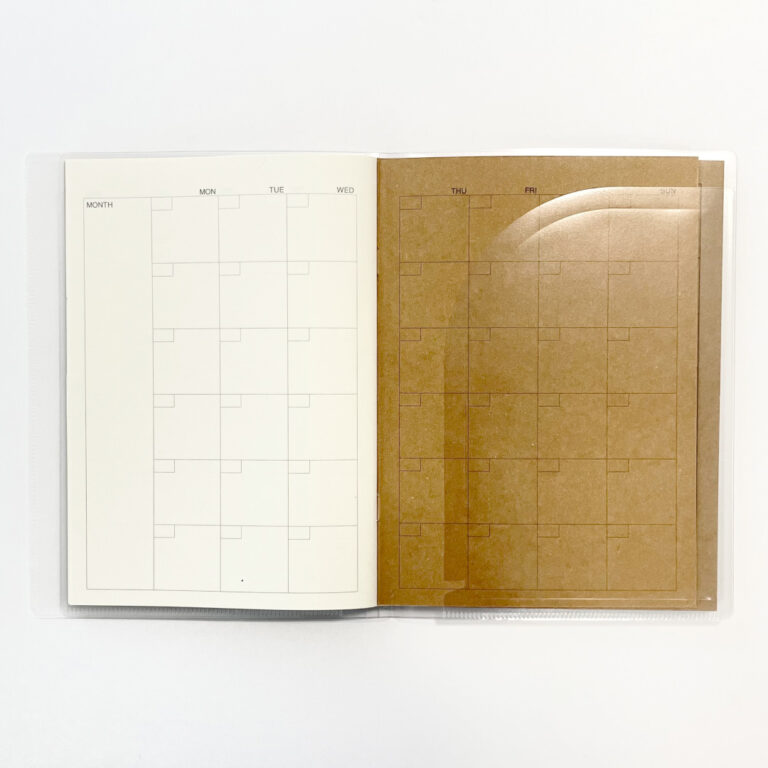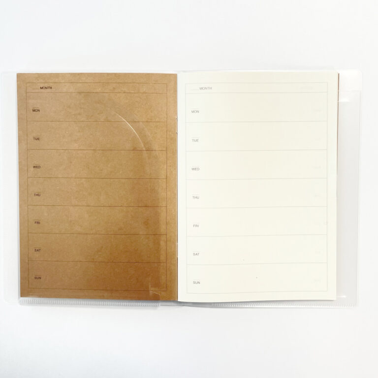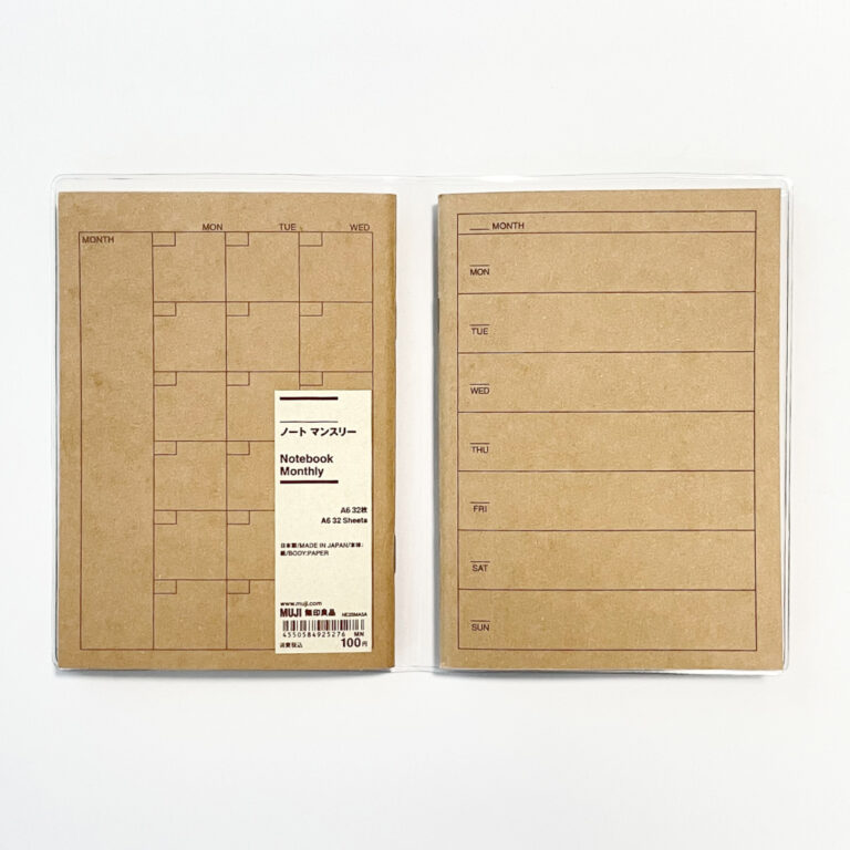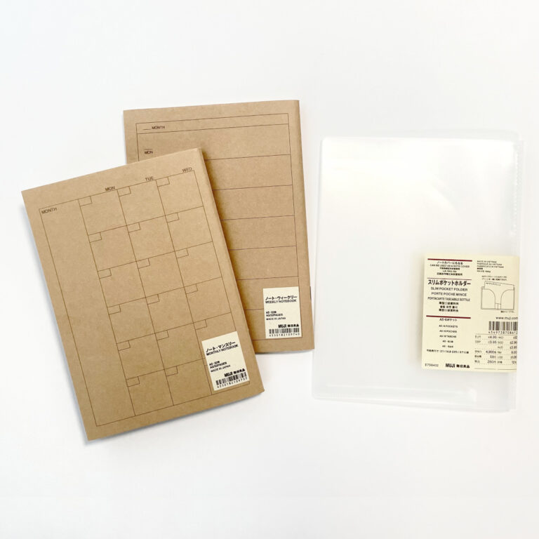 無印良品さんのA5サイズ用の『ノートカバーにもなるスリムポケットホルダー』は最大3冊のノートが収納できるので、『ノートマンスリー』と『ノートウィークリー』の2冊をセットにして使うと、とても便利でおすすめです。