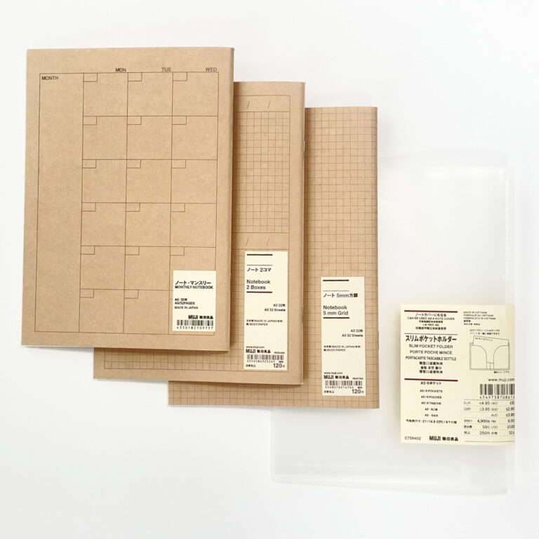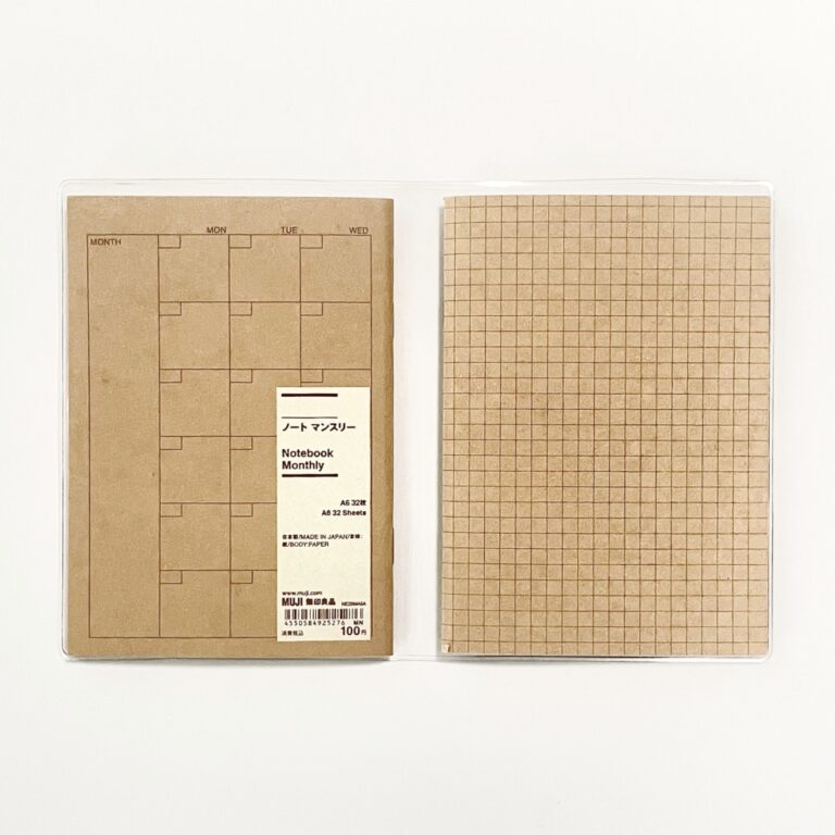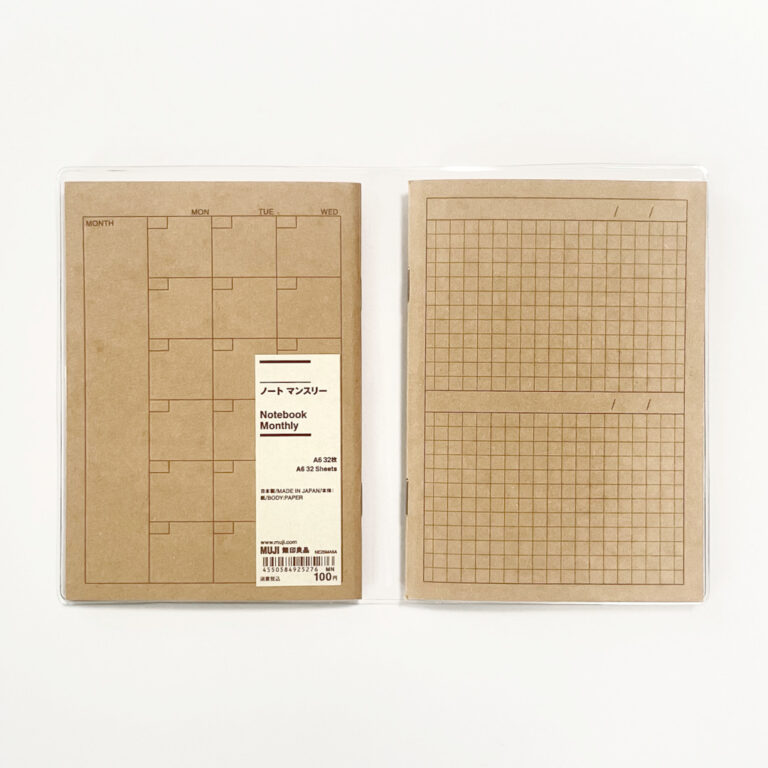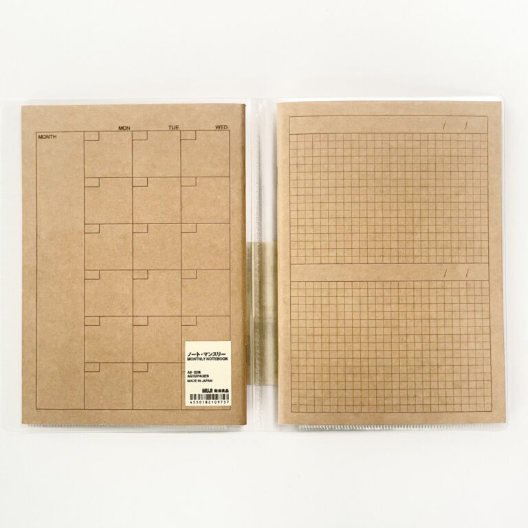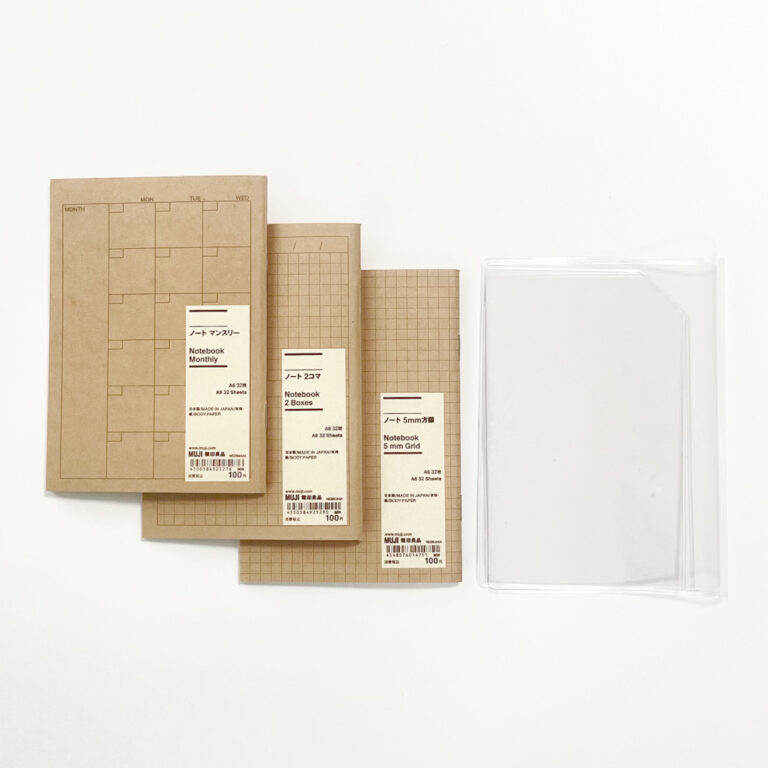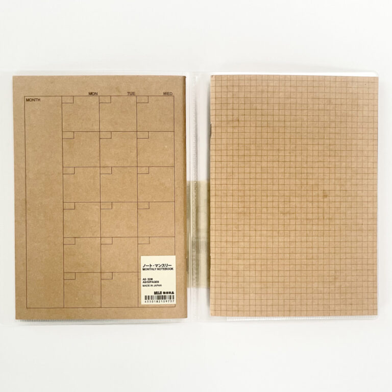 無印良品さんのA5サイズ用の『ノートカバーにもなるスリムポケットホルダー』を使って、『ノートマンスリー』と『ノート 2コマ』や『ノート 5mm方眼』を合わせて使うのもおすすめです。