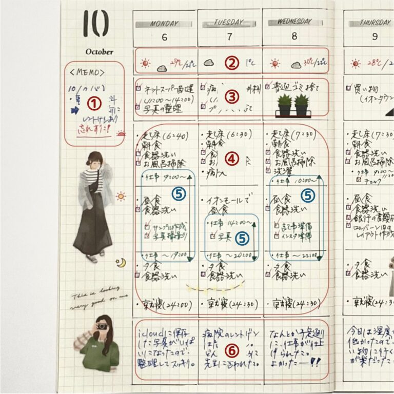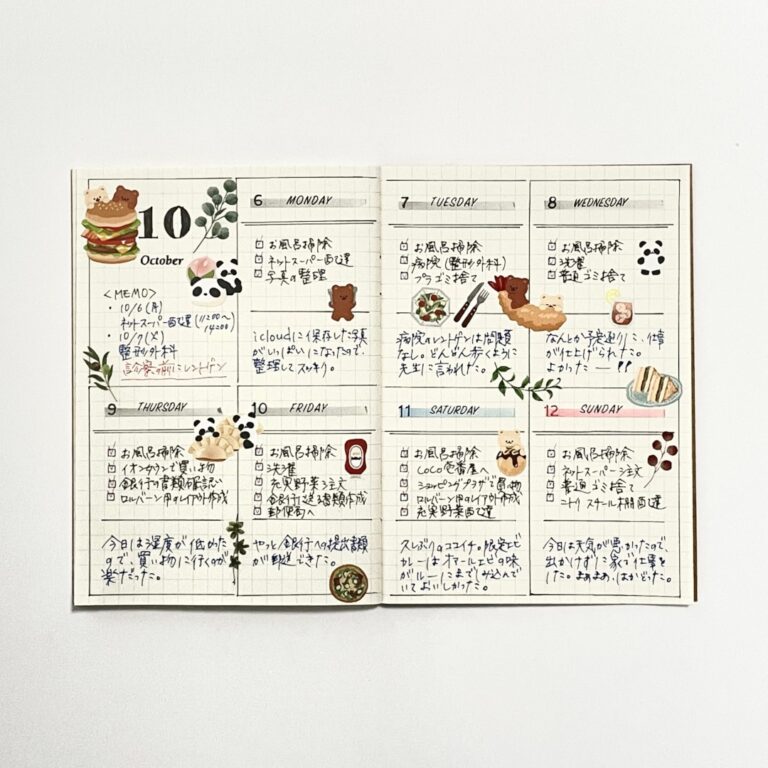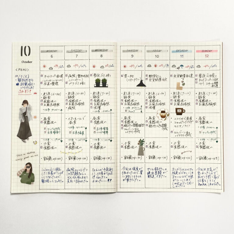 1週間分を見開き2ページで一度に見れるウィークリーは、TODOを管理して習慣化するのに便利なレイアウトです。