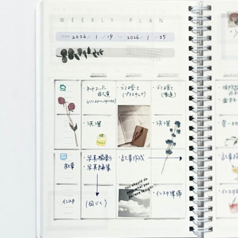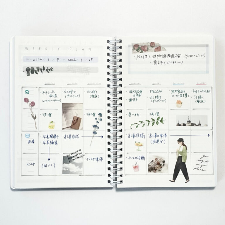WEEKLY PLANのレイアウトに書くライフログです。