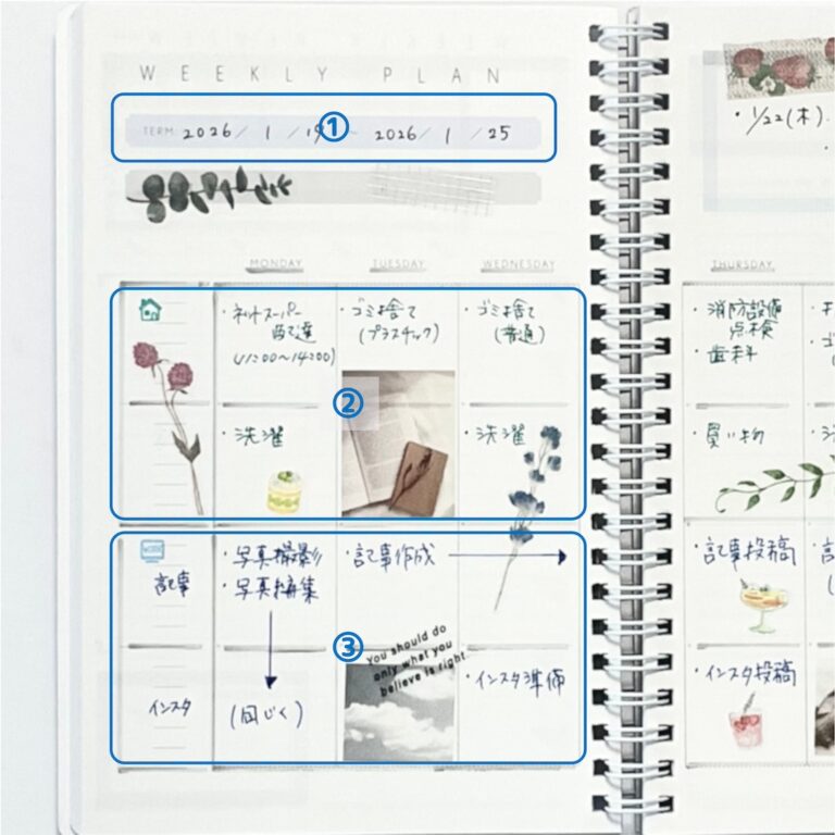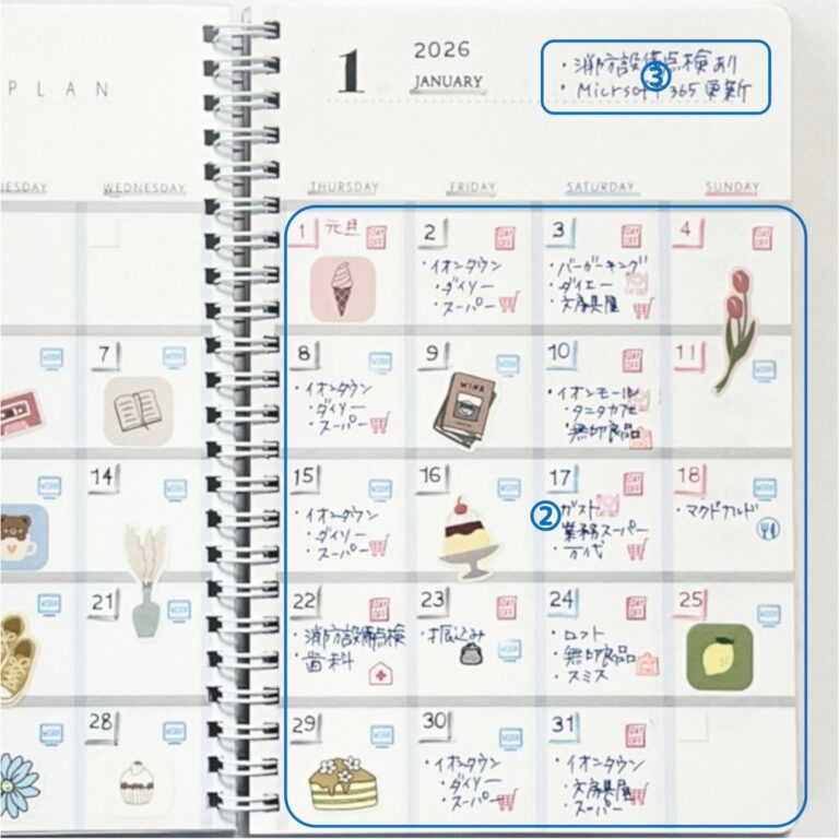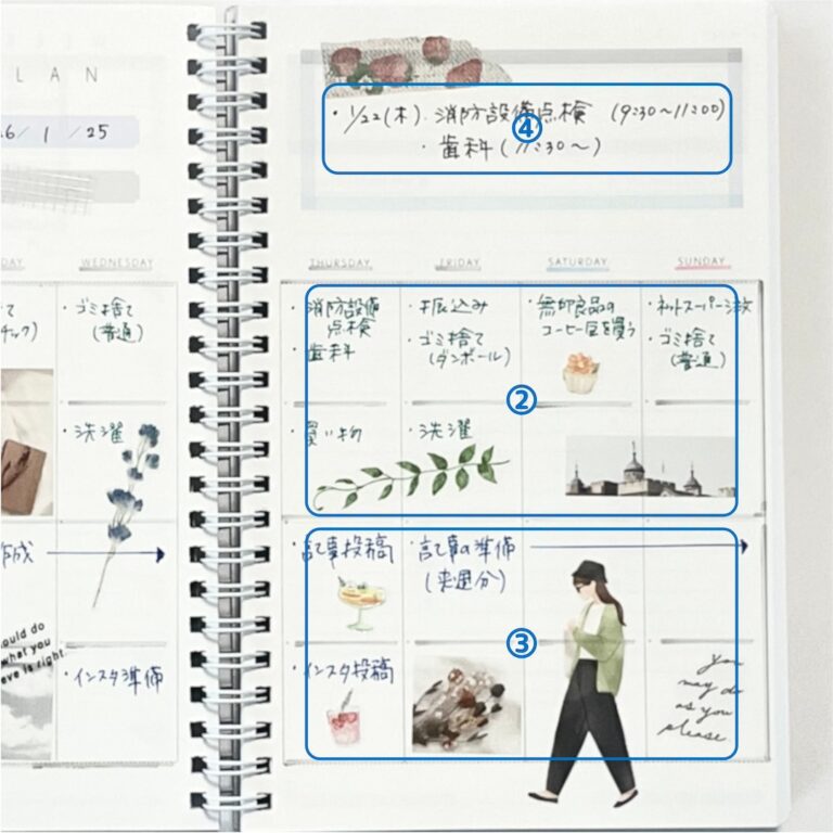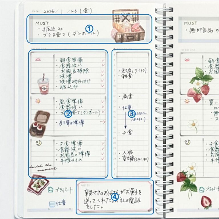③は仕事の他に、家族の予定などを書くのもおすすめです。