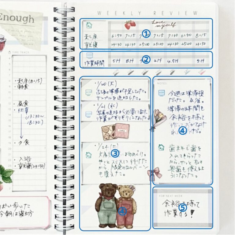 ● 1週間ごとに、その週を振り返れるウィークリーレビューページ