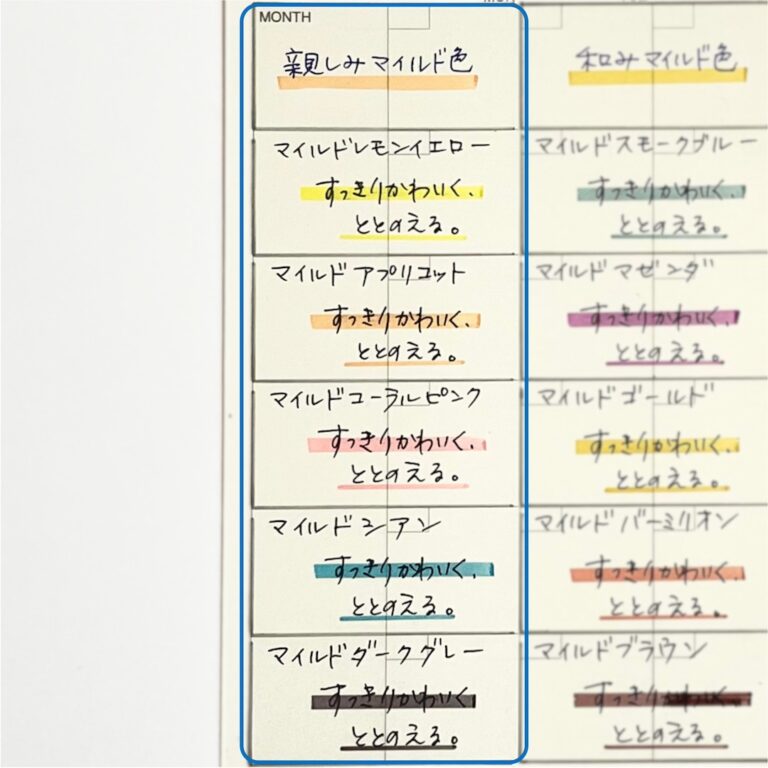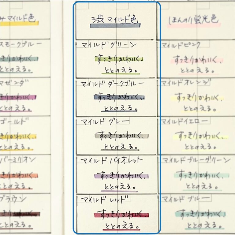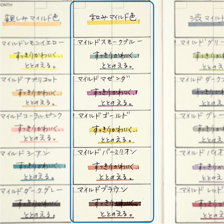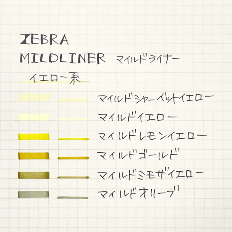 シリーズ第1弾のゼブラさんの『マイルドライナー』は豊富なカラーバリエーションなので、複数回に分けてのご紹介。今回はその2です。