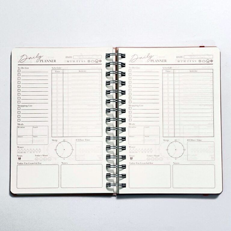 デイリープランナーは、A5サイズで日付フリーのデイリー(1日1ページ)手帳です。