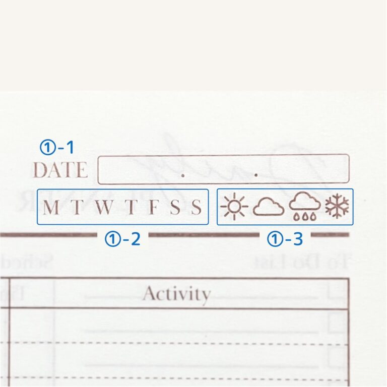 「To Do List」、「Weekly Priorities」などは、項目の前に日付を入れておくと分かりやすくなります。