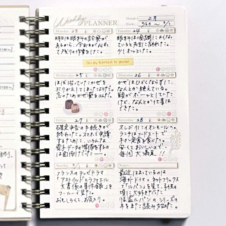 「Weekly(月〜日)」の欄にはプチ日記を書くのがおすすめです。